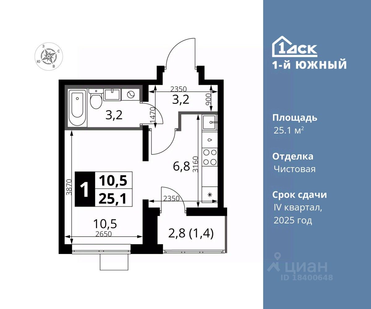 Щербинка (МЦД-2) (22 мин. пешком)